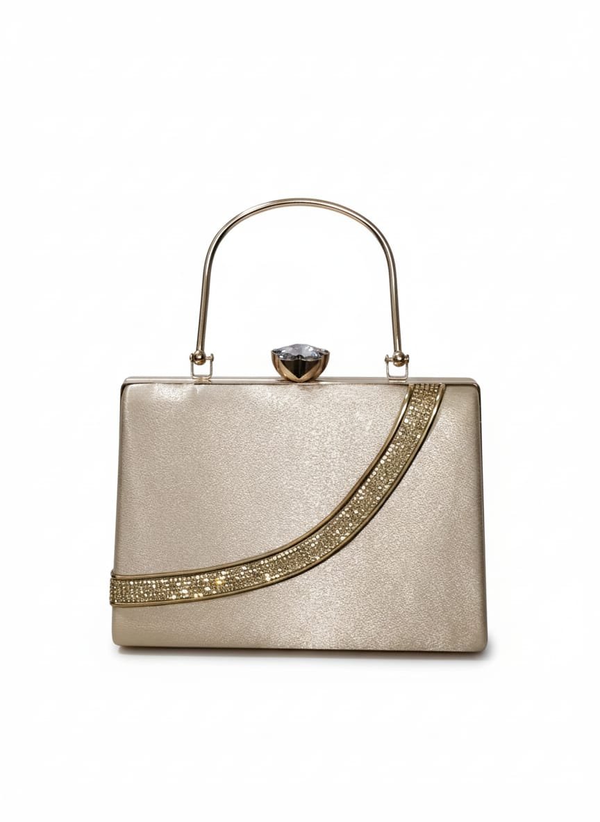 Gold Sparkling Handheld Party Clutch with Diamond Knob