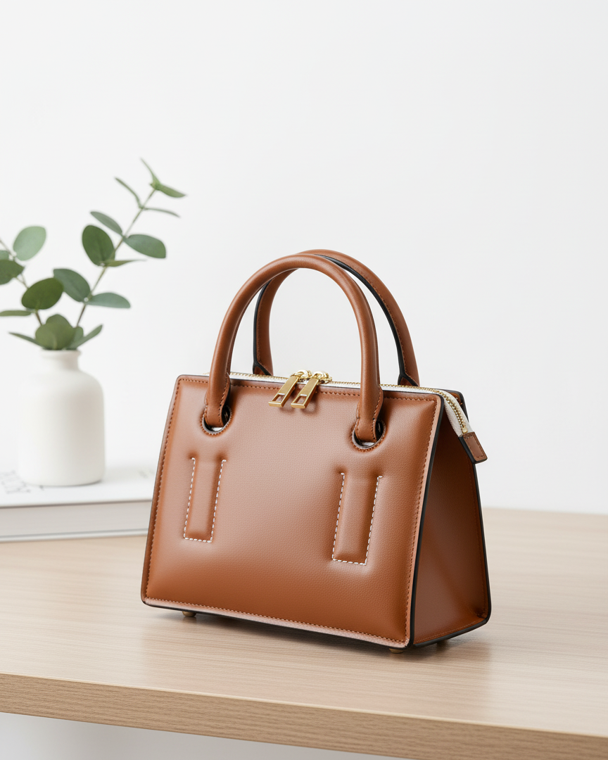 Elevate your everyday look with this Classic Tan Brown Structured Handbag, crafted from premium PU leather for a sleek and polished finish. Its boxy silhouette and sturdy double handles add timeless sophistication to your wardrobe. The bag opens to a spacious, well-lined interior for your daily essentials, making it ideal for both work and casual outings. Finished with fine stitching and metallic hardware, this piece is the perfect balance of elegance and functionality.